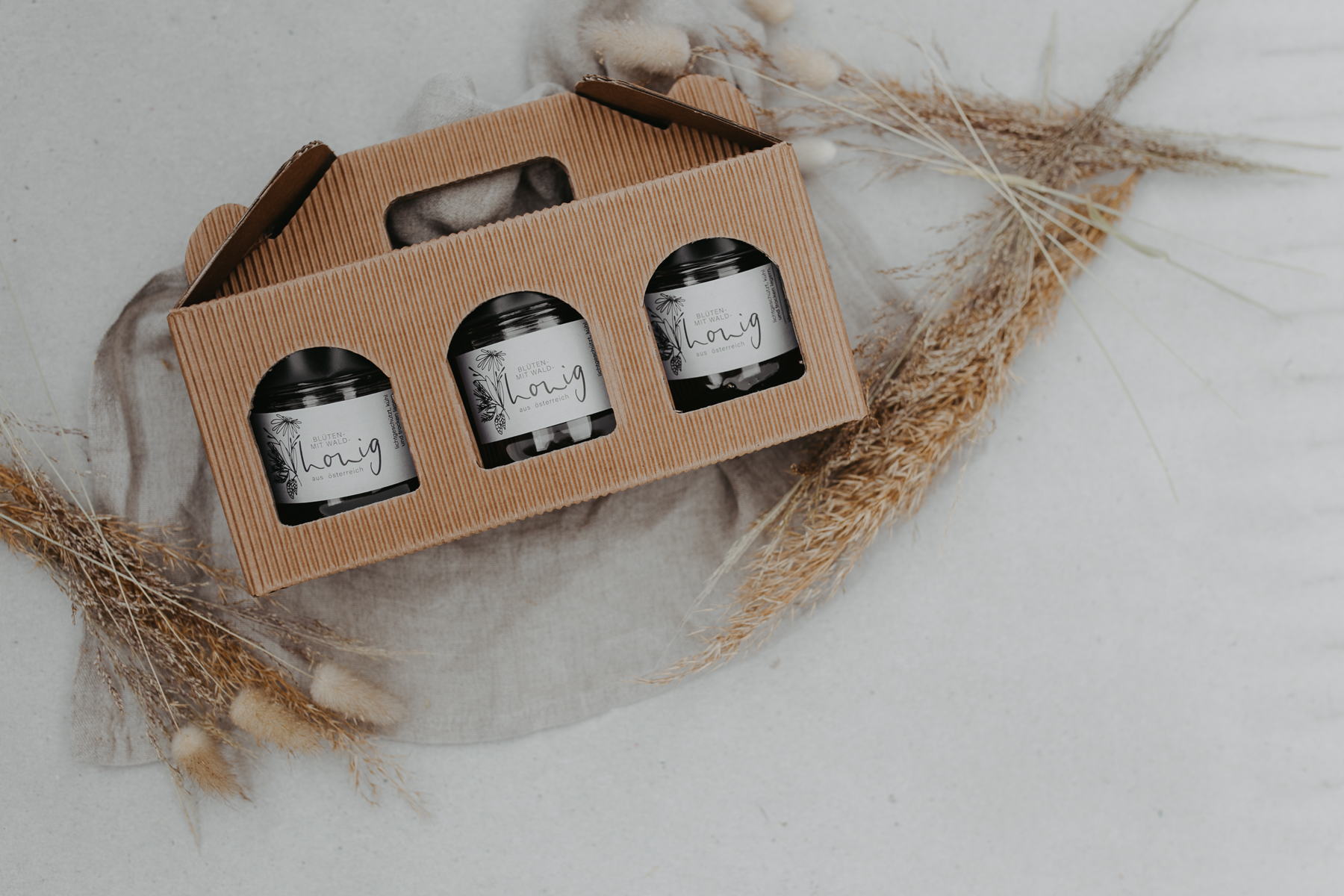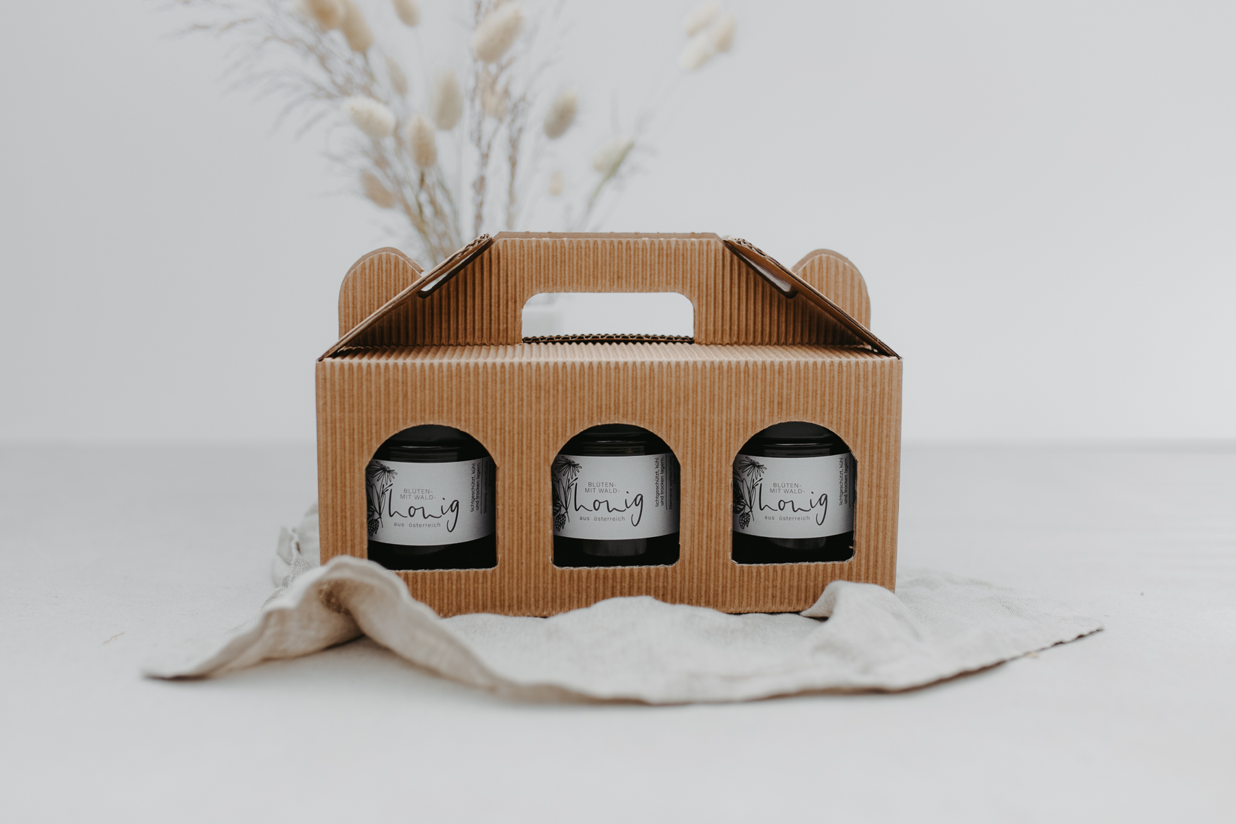 3 Gläser zu je 250 g im Geschenkskarton zum weiterverschenken.